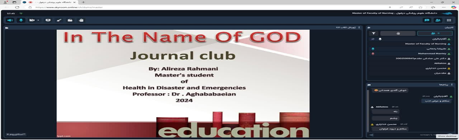 ارائه چهارمین ژورنال کلاب دانشجویی دپارتمان سلامت در حوادث و بلایای دانشگاه علوم پزشکی دزفول