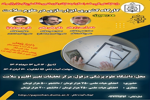 مرکز تحقیقات تغییر اقلیم و سلامت دانشگاه علوم پزشکی دزفول با همکاری کمیته تحقیقات دانشجویی، کارگاه سه روزه کشوری ابزار سازی در علوم سلامت را  به صورت حضوری و مجازی برگزار می کند