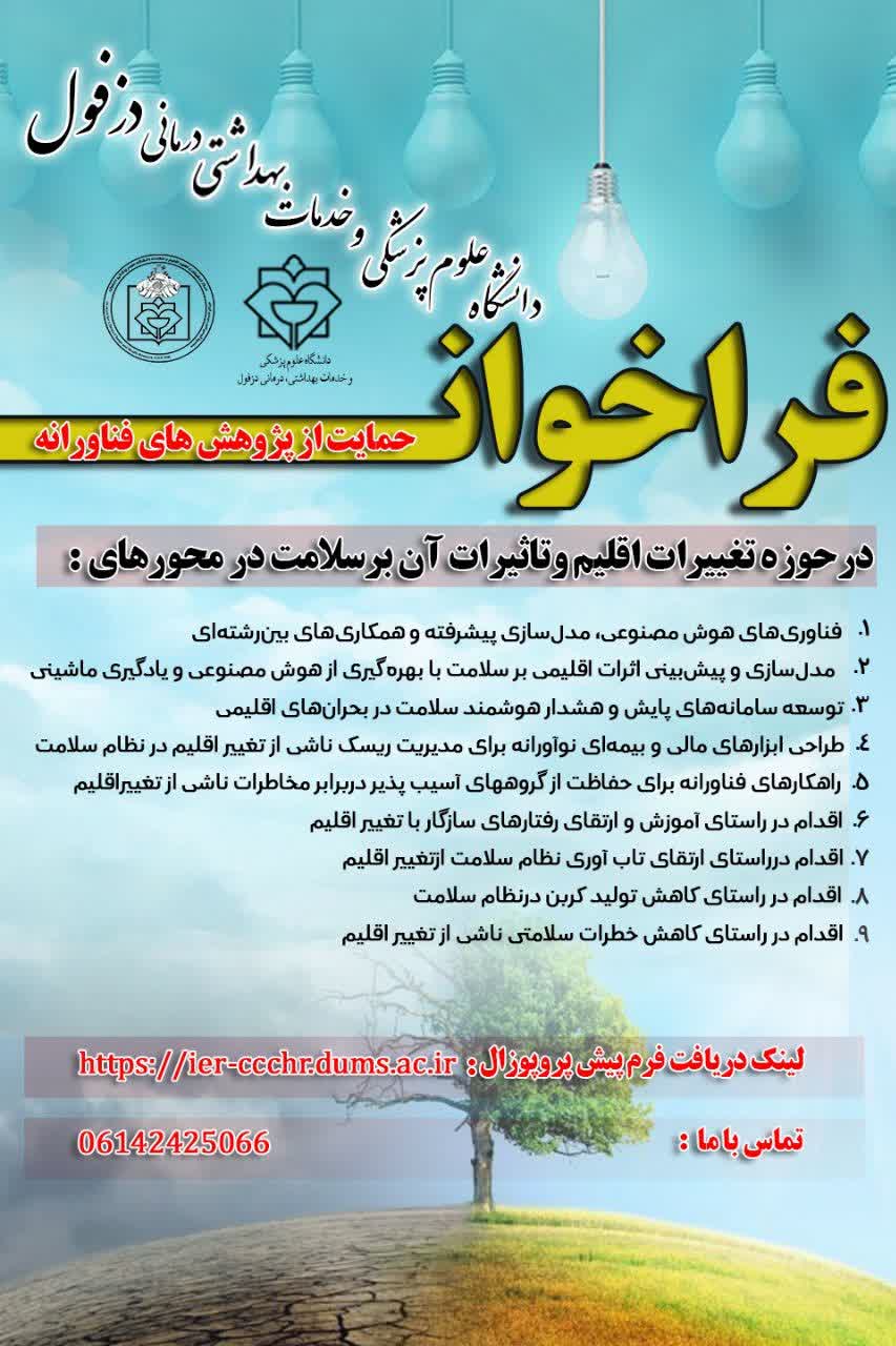 کنگره تغییر اقلیم و سلامت دانشگاه علوم پزشکی دزفول فراخوان حمایت از پژوهش های فناورانه در حوزه تغییر اقلیم و تاثیرات آن بر سلامت گروه خبری : اطلاعیه ها کد خبر : 19899 کلمات کلیدی