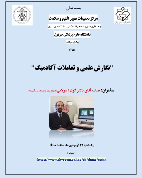 مرکز تحقیقات تغییر اقلیم و سلامت با همکاری مدیریت تحصیلات تکمیلی دانشکده پرستاری دانشگاه علوم پزشکی دزفول برگزار میکند.