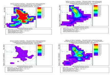 تحلیل فوق از مقیاس ECMWF پیش بینی مقیاس جوی و با استفاده از مدل لاگرانژی انجام شد. در این مدل، مناطق مستعد حرکت ذرات آلاینده محیطی در استان خوزستان با توجه به نقطه شروع(منبع) مشخص هستند.